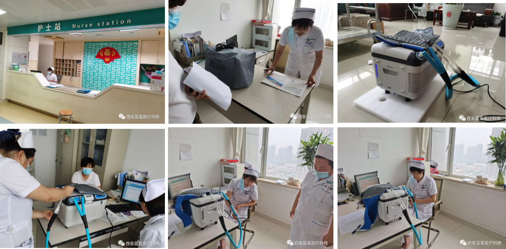 2021年7月12日上午,西安藍(lán)茗醫(yī)療科技有限公司第一營銷中心大區(qū)總監(jiān)郭銘遠(yuǎn)抵達(dá)蓬萊市中醫(yī)院,在醫(yī)院對醫(yī)護(hù)人員對我公司生產(chǎn)的加壓冷熱敷機(jī),進(jìn)行了詳細(xì)的裝機(jī)和培訓(xùn),現(xiàn)場醫(yī)護(hù)人員及患者進(jìn)行了體驗,并得到醫(yī)護(hù)人員的一致好評,此次培訓(xùn)取得圓滿成功。